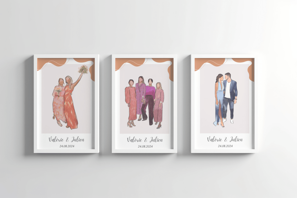 Offrez à vos invités une expérience unique avec notre service d’illustration en direct mariage pour capturer chaque instant de votre événement ! Spécialisés dans l’illustration personnalisée mariage, nous réalisons des dessins sur mesure de vos invités pour créer un souvenir artistique et mémorable.
