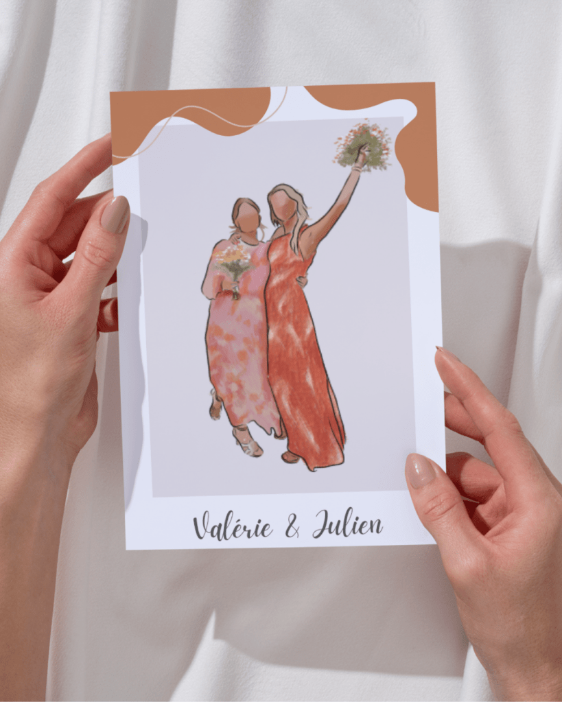 - Avec un cadre personnalisé aux couleurs et à la date de votre mariage que nous choisirons ensemble.